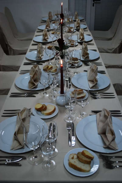 The Ston oysters were just a prelude though: down in the dining room we were expertly served by a team of students, and the delights on offer included raw sea urchin, carpaccio of octopus and sea-bream, local smoked ham, sepia ink risotto and mussels in sweet wine sauce. This was serious gastronomy. The linguistically versatile President lavishly praised our hosts and the students for the excellent and expertly served dinner; your correspondent, doubling as interpreter, was so overcome with emotion that he rendered all this praise with just one word: BRAVO!