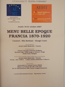 A l'issue de la cérémonie, les personnalités se sont rendues dans le "Hall room" pour le vernissage de l'exposition "Menu et convivialité", un résumé de la gastronomie en cours dans différentes capitales européennes entre 1870 et 1930, organisée par les Archives de la modernitéde Venise sous la conduite éclairée de Giorgio Conti.