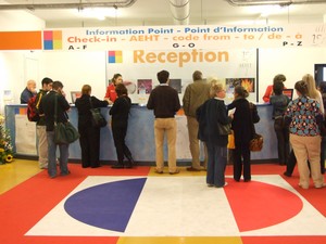 L'équipe chargée de la réception des congressistes a eu fort ą faire pour satisfaire les uns et les autres et parfois, c'était la cohue devant le comptoir!