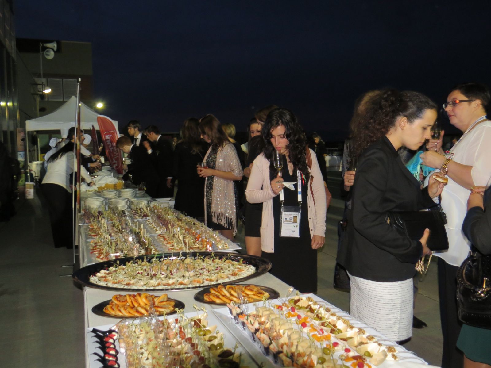 Plus tard, dans l'immense hangar où d'habitude ce sont les hélicoptères qui y sont parqués, la " salle à manger " décorée des drapeaux des pays participants aux Rencontres et des tables joliment dressées attendaient les convives.