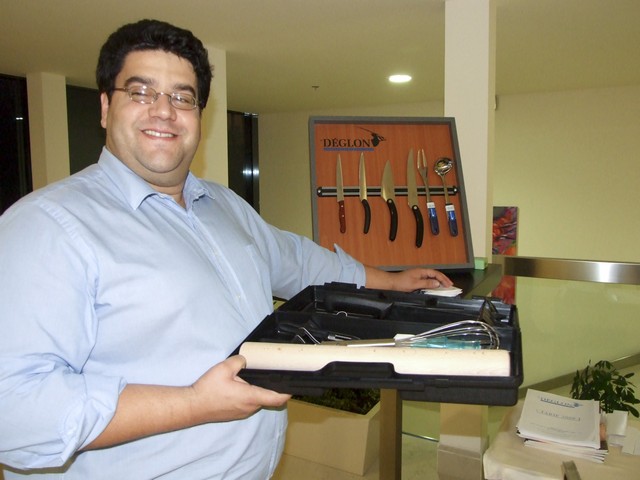 Depuis leur entrée au sein de l’AEHT en tant que membres-partenaires, ils ne manquent pas les rendez-vous annuels des Rencontres. Marco de la Casadelladivisa, Moïse Déglon de la coutellerie professionnelle du même nom et Serge Sevaux de la société Grand Marnier . Chacun sur son stand a pu présenter aux participants les produits apportés et exposés. Pour essayer, mais aussi pour…goûter !