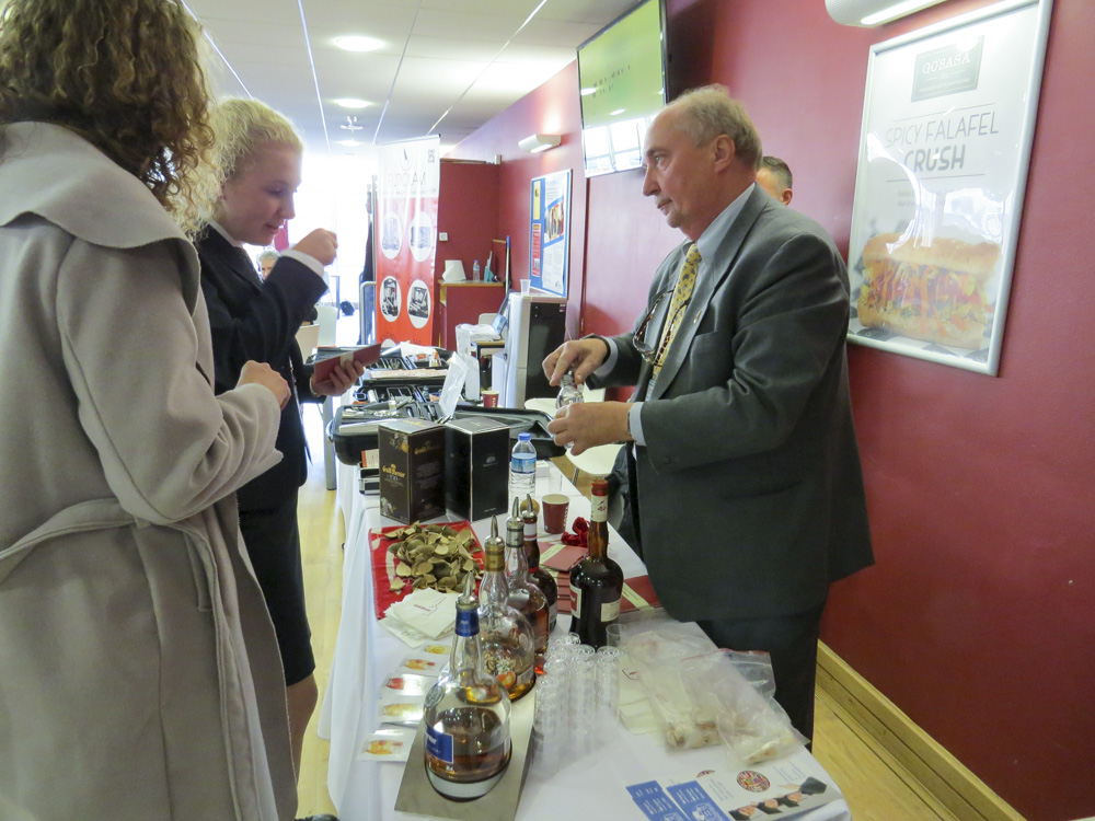 C’est avec un peu de nostalgie que Serge Sevaux, le commercial de la société Grand Marnier a une fois de plus régalé les visiteurs à son stand au Redbridge Collège. Et lors du dîner de gala, il a offert des flacons de sa marque aux gagnants du concours de cocktails. En effet, à partir du 1er mars 2017 il prendra sa retraite. Quel sera l’avenir de la participation de la marque à l’AEHT? Nul ne le sait puisque l’entreprise a été rachetée récemment. L’AEHT tient à exprimer sa gratitude à Serge Sevaux et lui assure qu’il restera toujours le bienvenu aux rencontres de l’AEHT !