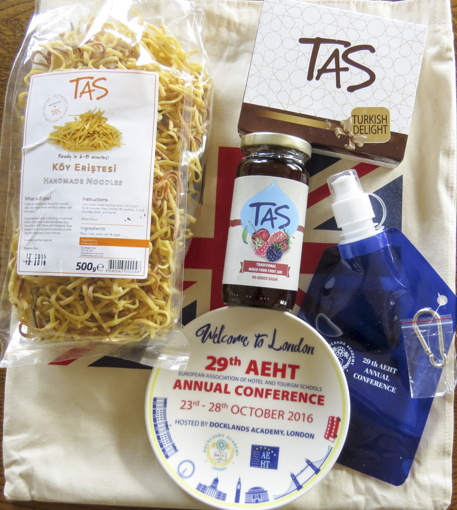La Docklands Academy London a bien fait les choses ! Chaque participant a trouvé dans sa chambre un joli sac contenant des produits offerts par ses sponsors : des pâtes, un petit pot de confiture, une soucoupe souvenir Villeroy et Boch - la taille au-dessus sera offerte lors du dîner de gala, un coffret de ‘Turkish delight’ et une petite gourde pour sportif !