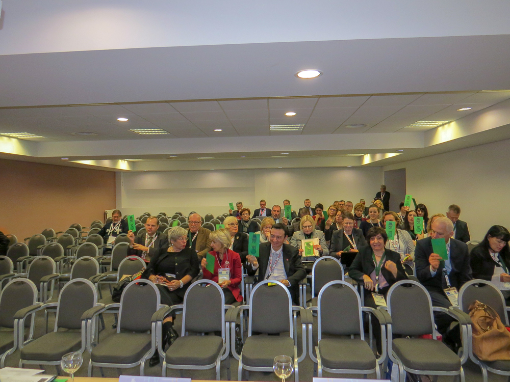Enfin, jeudi 16 a eu lieu dans la salle » Mercator », l’assemblée générale annuelle ouverte à tous les délégués dûment enregistrés et munis des cartons rouge, vert et jaune pour les votes. Disons-le d’emblée, les cartons rouges et jaunes sont restés dans les poches ! Unanimité sur tous les sujets.