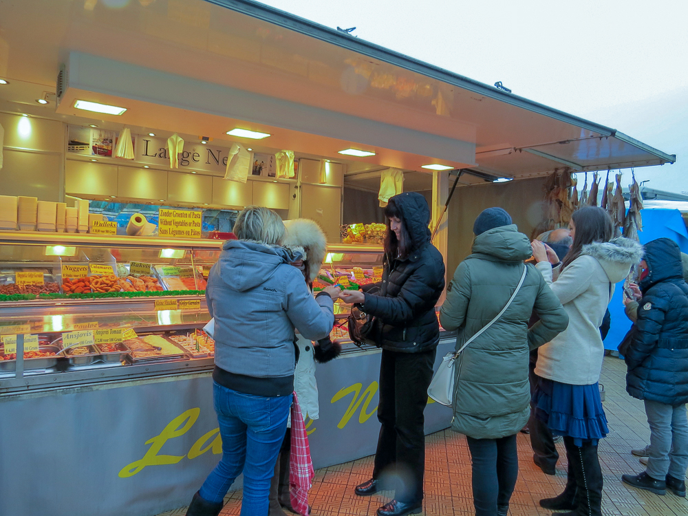 Le long du quai non loin de la gare, quelques stands de spécialités de poissons et crustacés en tous genres attendant le chaland.