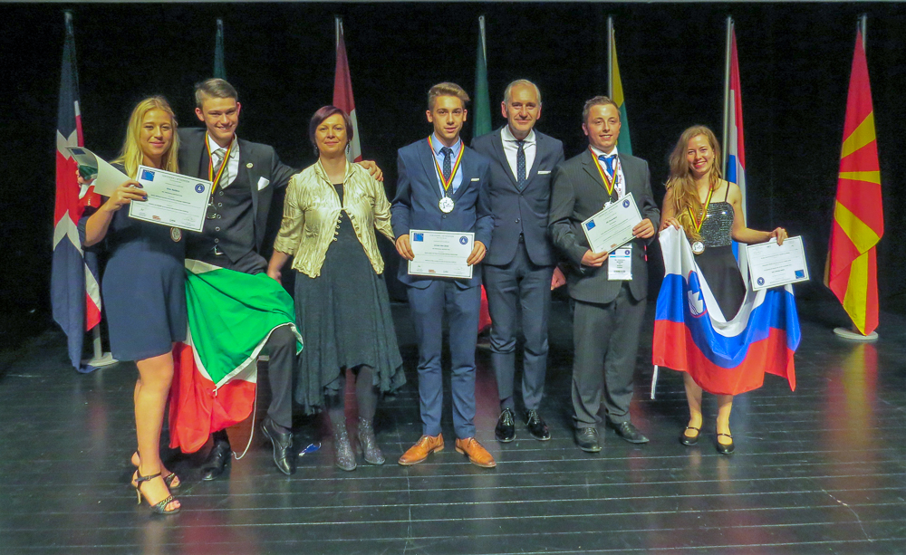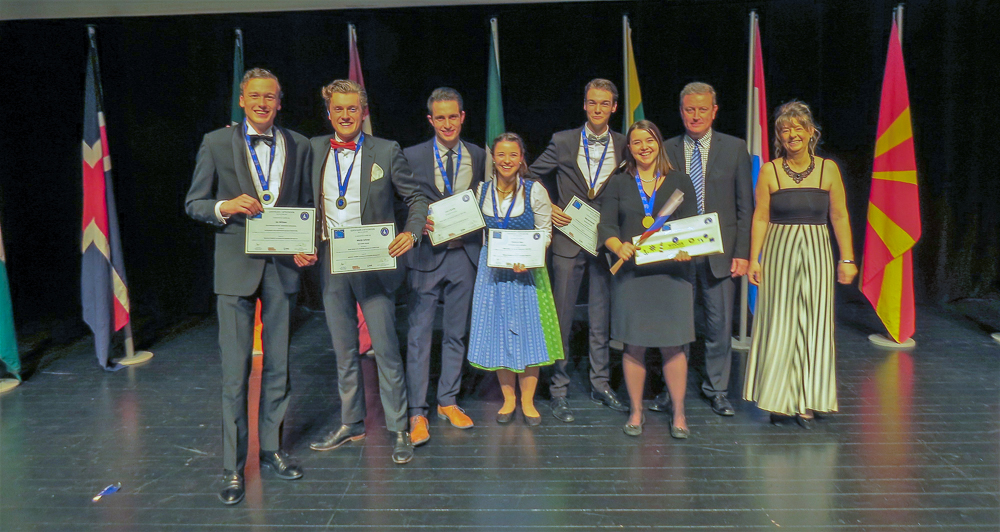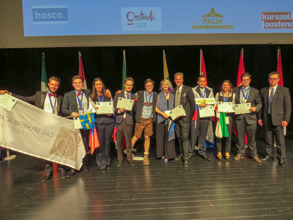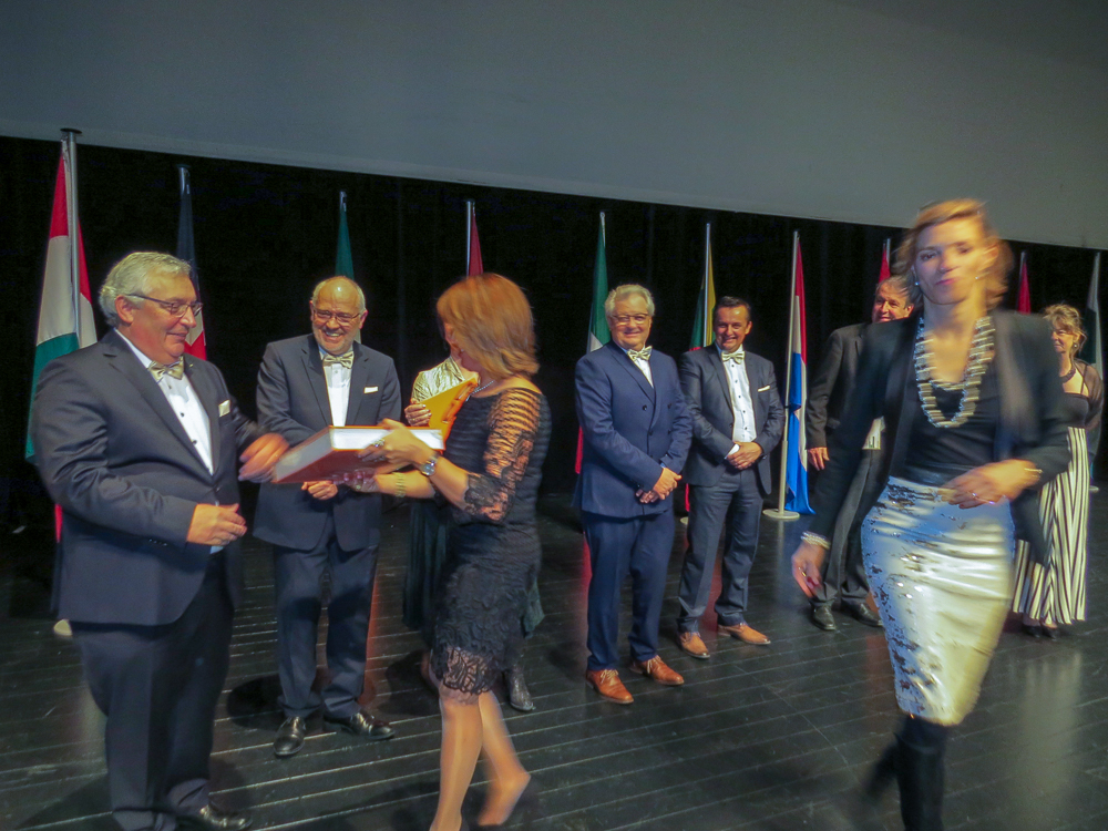 La soirée de dîner de gala et de remise des médailles aux lauréats des concours a mis un point final aux Rencontres 2017 de Ostende. Une soirée découpée en tranches et surprenante de ce fait. Ainsi et d’abord, une réception en bonne et due forme dans le Erehal où, quelques heures auparavant se trouvaient encore les boxes des concours. Seconde étape dans l’immense salle Delvaux pour l’entrée et le plat principal, troisième étape dans l’auditorium pour le défilé des délégations et la remise des prix. Enfin dernier acte, le dessert servi à nouveau dans le Erehal.