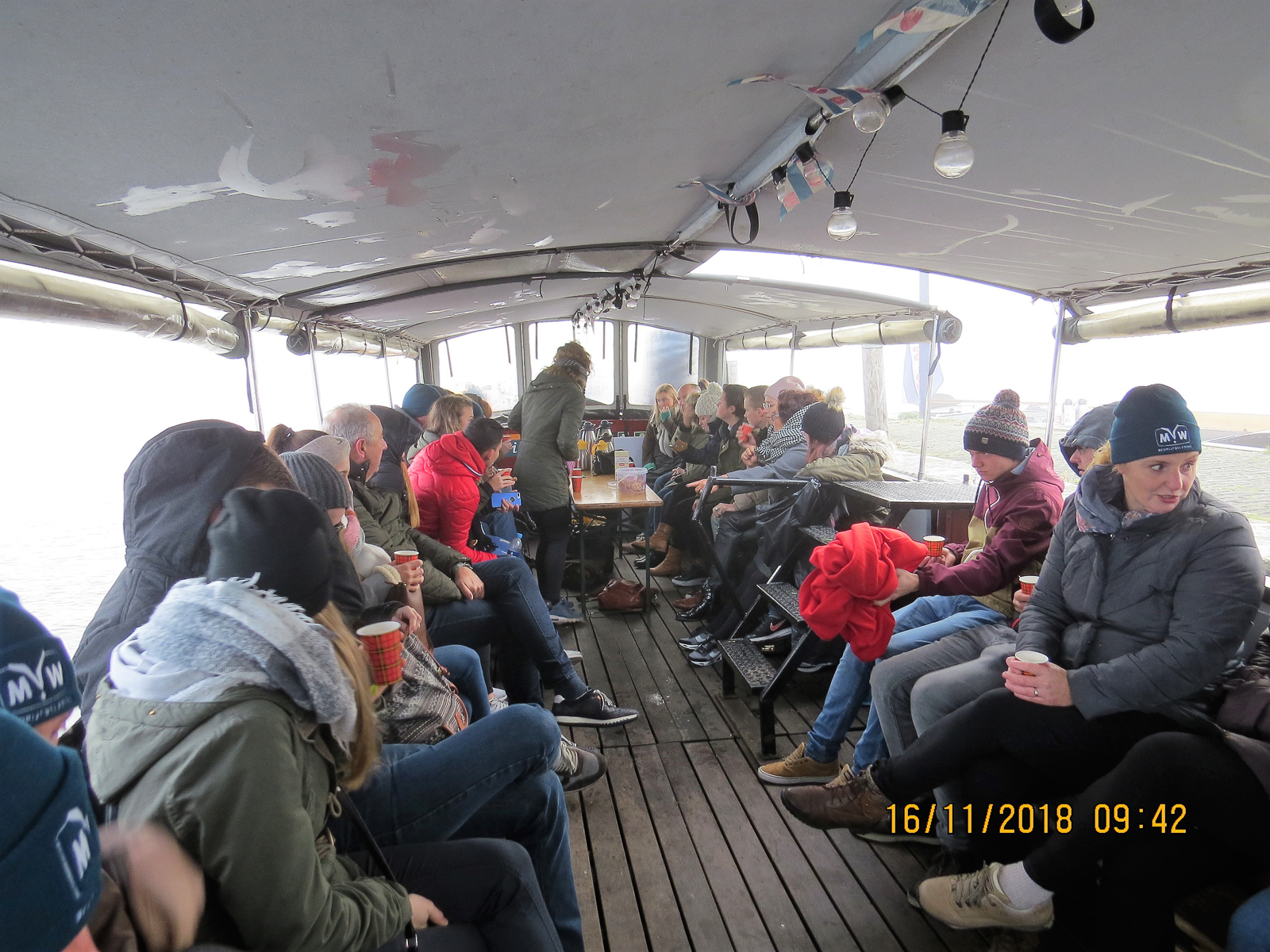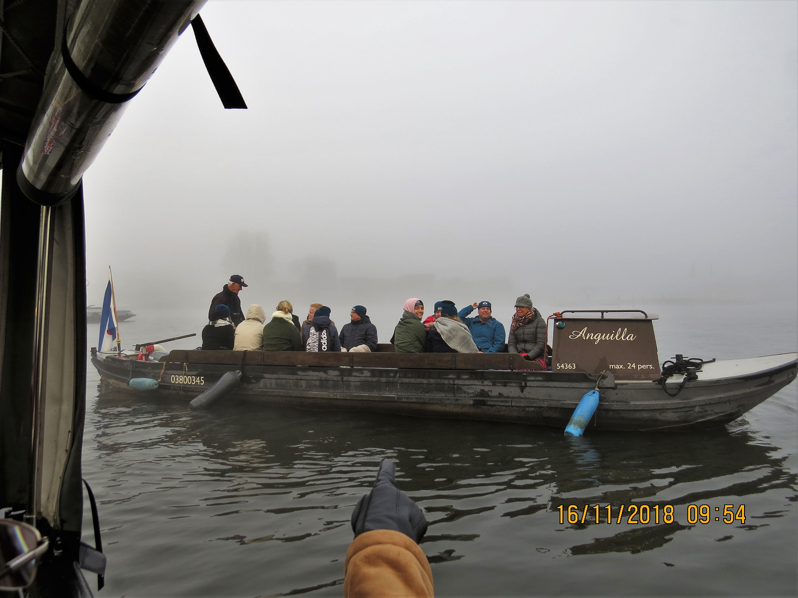 En revanche, le « culinary eel tour on the Frisian lakes (excursion culinaire sur les lacs de la Frise à la découverte des anguilles) » a tenu ses promesses au-delà des prévisions. Arrivés à Grou sur les bords du lac, les excursionnistes eurent droit à un bon café avant d’embarquer à bord de trois bateaux appartenant au Capitaine Ale de Jager chargé d’expliquer son travail, dont la pêche à l’anguille.