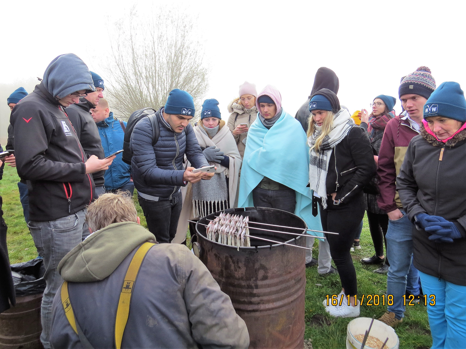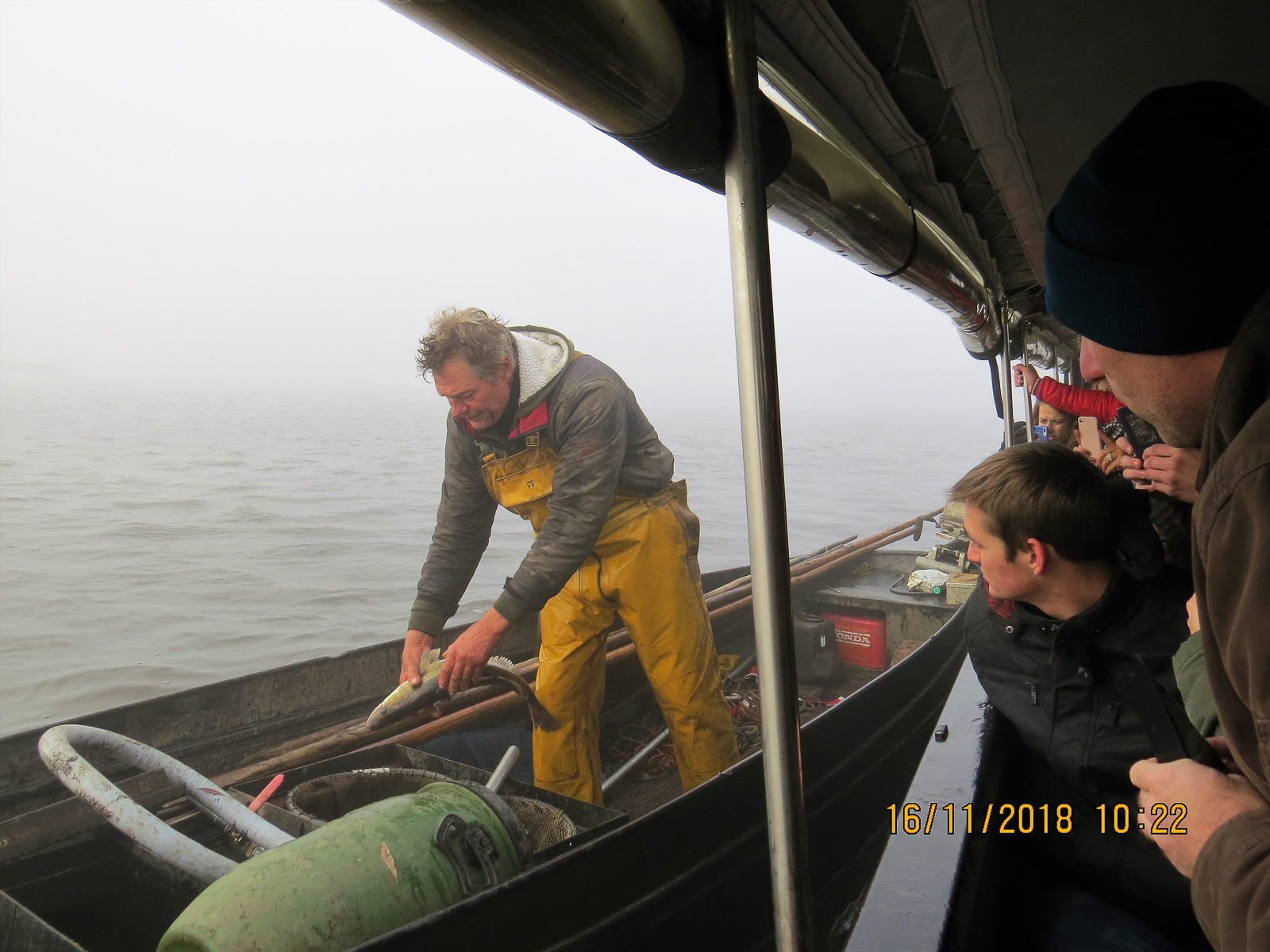 A bord, la température frisait le 0° centigrade, avec le brouillard pour accompagnateur. Les explications du Capitaine non seulement sur les anguilles mais aussi sur différentes espèces de poissons pêchés furent certes écoutées avec attention mais compte tenu de l’état de réfrigération des participants tous ne pensaient qu’à une bonne soupe chaude ! Ce qui fut le cas lorsque les trois bateaux accostèrent sur le coup de midi à la berge du Parc National « de Alte Faenen ».