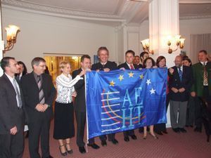 Et ce fut la transmission du drapeau de l'AEHT entre Semmering et Chateau-Chinon. Un moment toujours émouvant lorsque le symbole de l'AEHT glisse de main en main de Semmering vers Chateau-Chinon avec l'hymne européen et les applaudissements pour support. La page 2007 est tournée. Vive la page 2008!