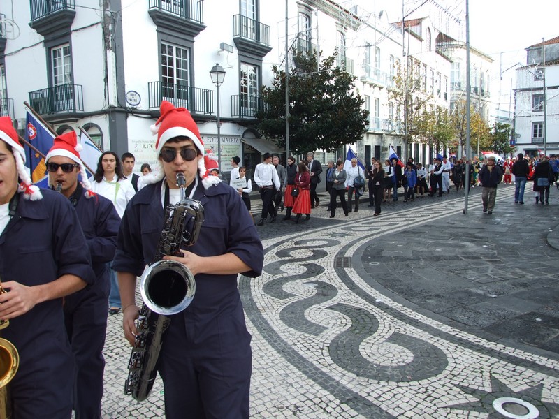 Auparavant, une messe de l’avent avait été prévue – bien que facultative bien sûr- dans l’église de Sao Pedro, célébrée par le Père Joao Maria en présence de la quasi totalité des participants aux Noëls d’Europe et des élèves de l’école. Les intentions de prière furent lues par les élèves des diverses délégations. Le Père Joao Maria a souhaité la bienvenue et un excellent séjour aux délégations, se réjouissant de cette manifestation organisée à Ponta Delgada dans l’ esprit de Noël.