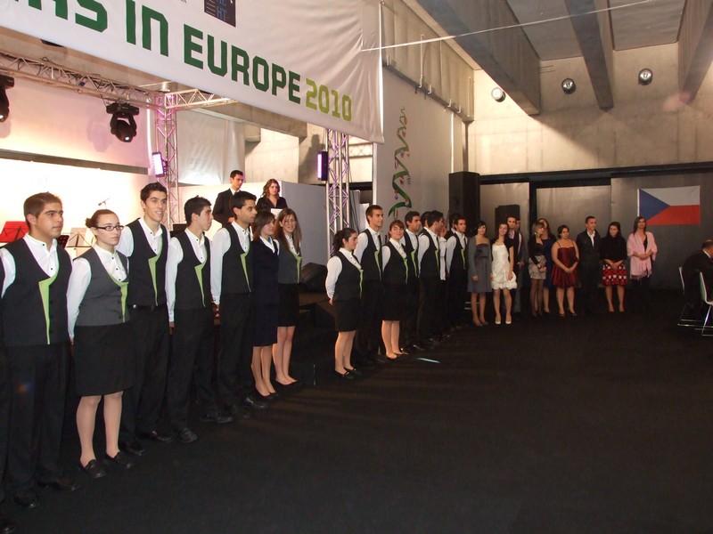 Le passage symbolique du témoin entre Ponte Delgada et Rhodes avec le drapeau européen glissant de l’une à l’autre des écoles, souligné par l’hymne européen a mis fin à la soirée par une touche d’émotion. Loizos N. Soroniatis a conclu en remerciant chaleureusement Ponta Delgada et en invitant d’ores et déjà les écoles à Rhodes en 2011. Et c’est par un « jingle bell » initié par Bonneville que se sont achevés les 19èmes Noëls d’Europe. Rendez-vous l’an prochain à Rhodes.