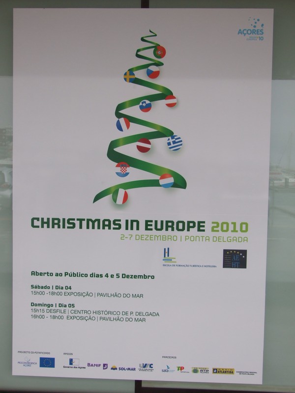 L’arrivée à Ponta Delgada des délégations était prévue pour la journée du 2 décembre et dans l’ensemble ce fut le cas. Sauf pour celle de Bled qui arriva le lendemain 3 vers 10h, directement dans la salle d’exposition pour le montage de leur stand. Les autres délégations étaient déjà au travail. La délégation de Maribor quant à elle, aussi de Slovénie a été privée d’une partie de ses bagages le premier jour. Heureusement que les délégués avaient du matériel dans les bagages à main pour décorer leur stand !