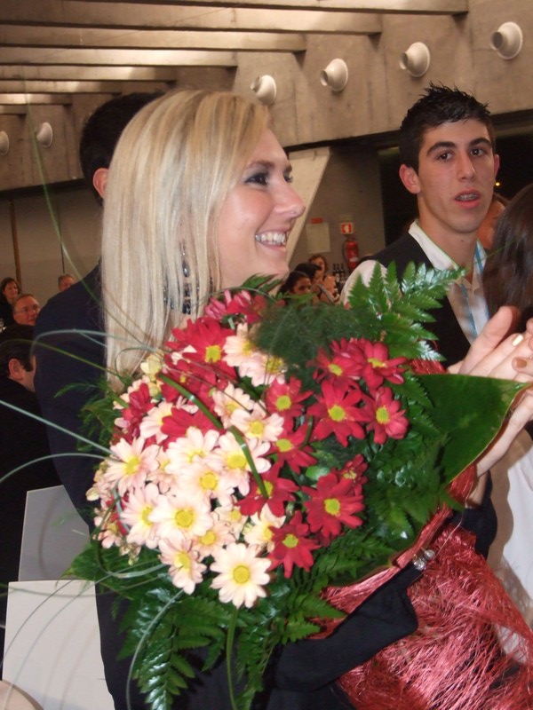 A Poznan déjà la jolie Marlène Damiao a été fêtée pour son anniversaire qui était tombé le 4 décembre. Cette fois encore ce fut le cas, mais à Ponte Delgada, sur ses terres, à l’issue du buffet européen. Aussi les élèves lui chantèrent sur la scène un vibrant « happy birthday to you » tandis que le Luxembourg et la France lui offraient un petit cadeau sous les applaudissements de tous.
