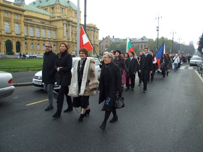Le joyeux défilé s’est étiré sur des dizaines de mètres, provoquant l’intérêt des badauds étonnés par toute cette animation inhabituelle dans les rues de Zagreb. Au passage, ce défilé a croisé une manifestation de défenseurs des loups, brandissant des pancartes et calicots revendicatifs, sans troubler pour autant la parade des Noëls d’Europe.