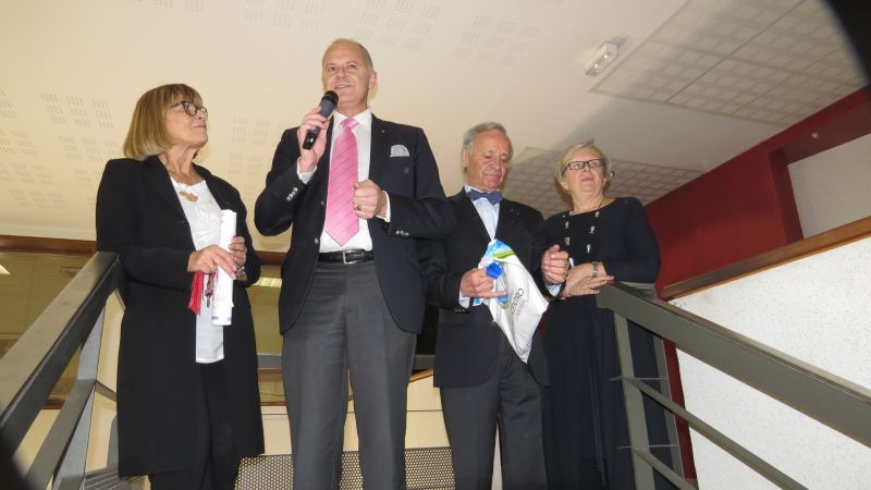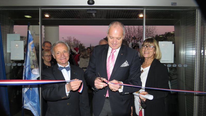 Dominant le public, les personnalités au moment des discours. De g. à dr. Mme. Agnès Vaffier, MM. Patrick Thévenin et Gérard Vitalis, Mme. Christiane Keller