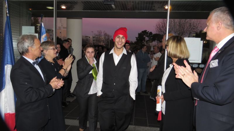 Les choses sérieuses ont débuté après le premier repas –excellent- pris dans le restaurant d’application où les élèves du lycée ont mis en œuvre leur savoir-faire sous le regard sans concession des professeurs de la spécialité restaurant. Les stands de chaque délégation, occupés par leurs titulaires le plus souvent en costumes ont ensuite subi leur première revue, tant par les enseignants des lieux que par les élèves.