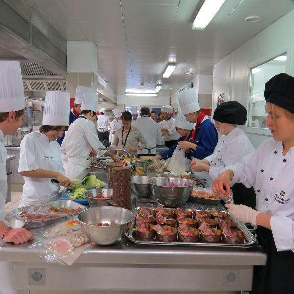 Cela débute dans les cuisines vastes et très bien équipées du Lycée où par rotation, les différentes écoles se sont succédé selon en calendrier très précis. Les élèves de chaque école étant supervisés par leurs professeurs respectifs.