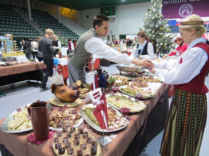 En deux vagues, les délégations avaient pu disposer des cuisines de l’école de Presov pour préparer leurs spécialités joliment présentées au centre du hall des sports transformé pour l’occasion en restaurant.
