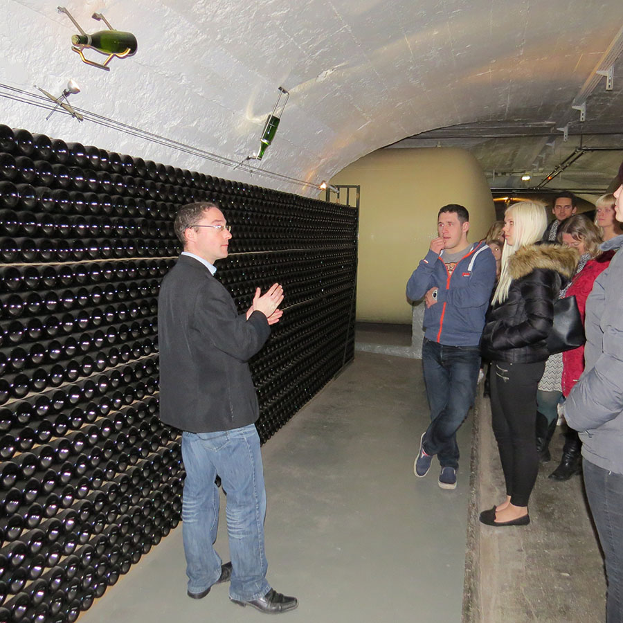 Troisième étape : les caves de Bernard Massard, sponsor des Noëls d’Europe et viticulteur de poids au Luxembourg. Sous la conduite de Christophe Rieu, responsable du service tourisme de l’entreprise, une visite presque complète des différentes étapes, illustrée par une vidéo permit à tous de se rendre compte de la vitalité des vins du Luxembourg, en particulier de ceux des coteaux de la Moselle, qui coule toute proche. Et au final, la dégustation d’un excellent verre de crémant a mis fin à cette étape œnologique, suivi pour certains de l’achat de quelques bouteilles !