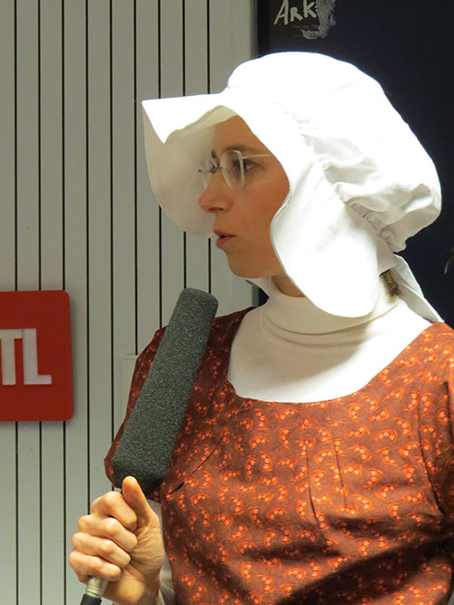 Luxembourgeoise, la secrétaire générale de l’AEHT, Nadine Schintgen n’a pas ménagé sa peine tout au long du programme. Pour preuve, elle n’a pas hésité à confectionner son propre costume sur le model de ceux portés dans le passé par les Luxembourgeoises lors de kermesses paysannes et à le revêtir lors de l’inauguration de l’exposition et lors de l’émission sur RTL –Lëtzebuerg ! Bravo.