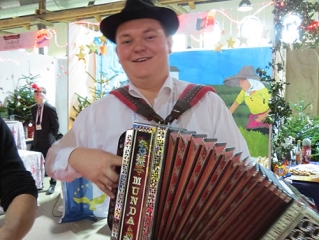 Durant l’exposition, on a pu entendre et écouter des airs d’accordéon venus du stand et autour du stand de Maribor (Slovénie). Il s’agissait d’un étudiant de la délégation, Bojan Seruga, un solide gaillard, qui a de surcroît tout à fait le physique d’un musicien du type « Oberkrainer » !