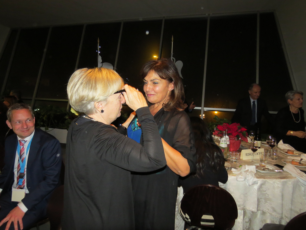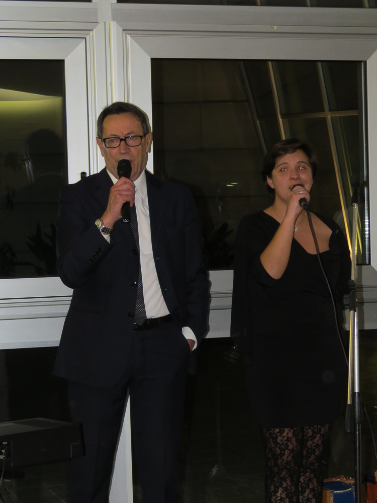 Ce fut enfin la cérémonie de passation du drapeau de l’AEHT entre San Benedetto del Tronto et Fatima qui aura la tâche d’organiser les Noëls d’Europe en 2017 .Un moment solennel bien que détendu avec en toile de fond l’hymne européen chanté a capella par Silvia Ulpani . Et last but not least, cette dernière avec Pascalino Piunti maire de San Benedetto del Tronto reprirent en chœur des chants italiens. Une bien belle conclusion en vérité !
