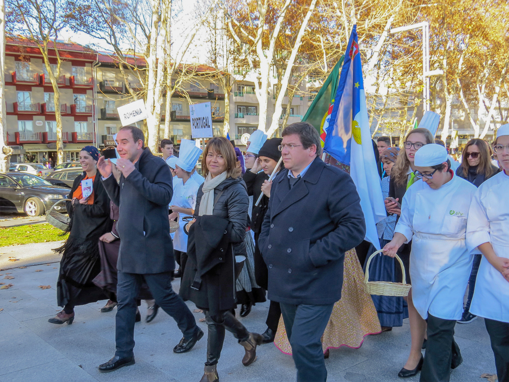 Upon the arrival of Luis Miguel Albuquerque, President of the Ourem Municipality which includes Fátima, Renato Guiomar spoke briefly to greet the gathering and to invite the President as well as AEHT Vice-President Ana Paula Pais to cut the traditional ribbon signalling the departure of the parade. Around the square a number of onlookers followed with interest this colourful crowd come here from other lands, with their flags fluttering in the wind, and many of them in their traditional costumes.
