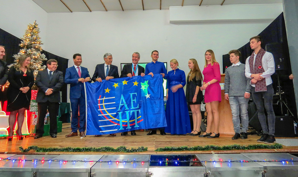 And finally, in the last highly symbolic act, with good humour and to the strains of the European anthem, came the handing over of the AEHT flag from the Fátima team to the Riga team who will organise the 27th Christmas in Europe next year.
