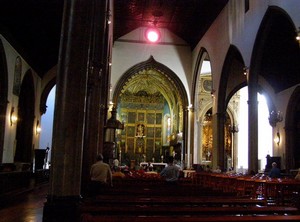 Le séminaire a commencé par une visite guidée de la ville de Funchal (nom provenant du fenouil qui poussait en abondance sur le site à l’arrivée des colons) déjà en ébullition pour la fête de St Pierre, patron des pêcheurs. Au programme un arrêt pour admirer la Sé, cathédrale romano-gothique de fin XVe siècle (1493 – 1517), monument national et première cathédrale épiscopale portugaise d’outre-mer. En face, se dressait le monument commémoratif de la visite du pape Jean-Paul II, unique pape ayant rendu visite à l´île.